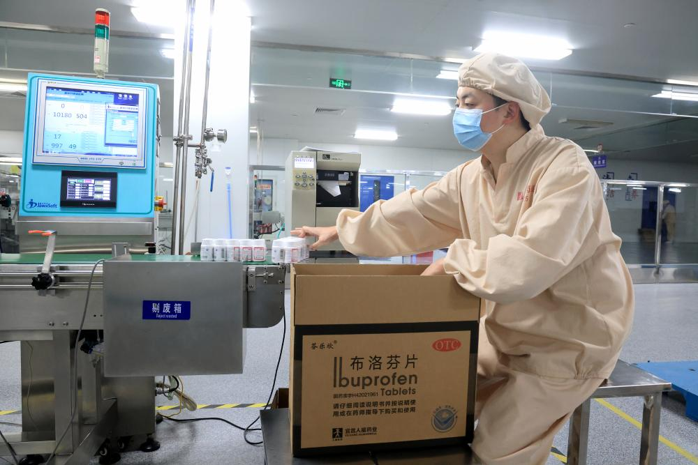 在公司远安口服制剂车间,布洛芬生产线一刻不停地运转,该产品可用于缓解感染新冠病毒后出现的发热、头痛、四肢酸痛等症状。另外,对乙酰氨基酚片、复方氨酚烷胺胶囊、福尔可定糖浆等药品也都在园区加紧生产。