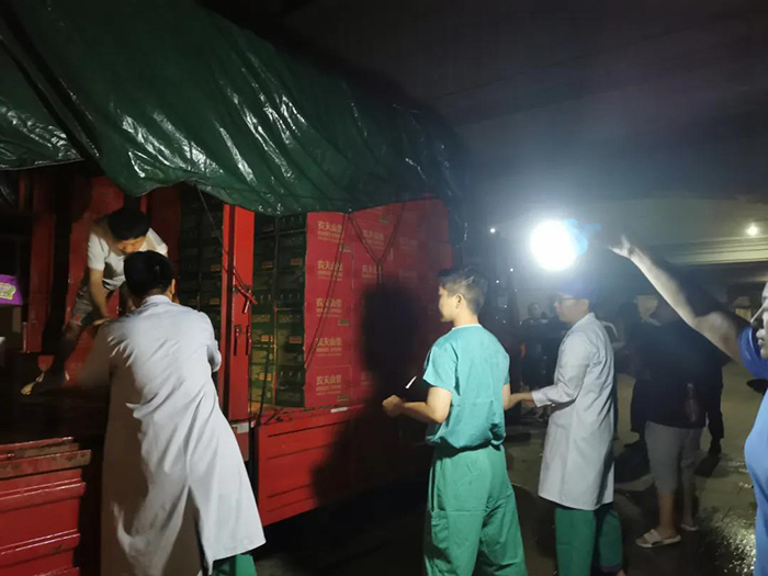 7月21日,宜昌人福药业首先安排驻地员工为河南省人民医院、郑州大学第一附属医院、郑州市第一人民医院等坚持在岗的ICU医生送去几百件生活急需物资。